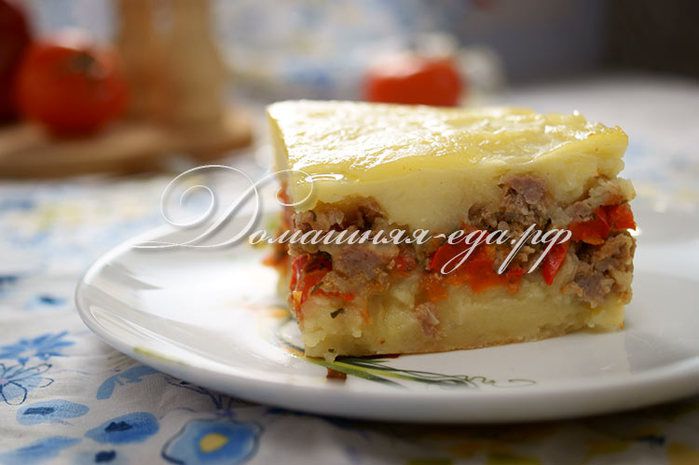 ЗАПЕКАНКА ИЗ КАРТОФЕЛЬНОГО ПЮРЕ С ФАРШЕМ.