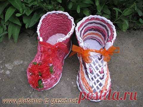 ▶ ▬► Плетение из газет башмака. Часть III. /Shoes from newspapers - YouTube