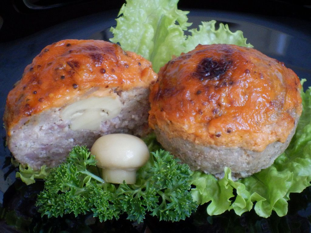 МАФФИНЫ МЯСНЫЕ с грибами !!! **Начинка: грибы и лук мелко порезать, обжарить 4мин, добавить соль, перец. *Основа: гов/свин/фарш+яйцо+терт/лук, соль, перец. *В формы для Маффин выкладываем фарш, ложкой делаем углубление, начинка и 1целый грибок внутрь! Избегая разрыва при запекании - слегка прессуем руками. На верхушке делаем проколы вилкой, смажем майонез+кетчуп. *В духовку на 20мин, при 200г. Затем даём слегка остыть, впитается сок, далее снимаем Маффины с противня. *Удивите шедевром !!!