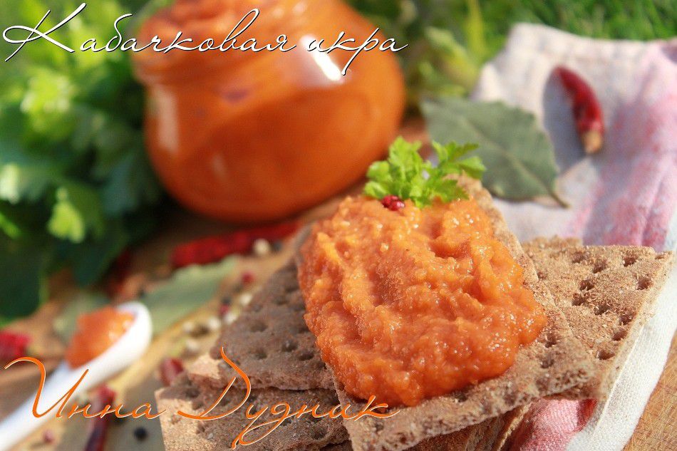 КАБАЧКОВАЯ ИКРА **Кабачки 2кг (очищ,чистым вес!) +лук 350г -на мясорубку. Переложим в кастрюлю, добавим том/пасту 150--200г+раст/масло 150мл,перемешать. Довести до кипения, варим 1час, периодически перемешивая. *Ввести уксус 1с/л+сахар+лавр 2шт+соль,перец -варим еще 30мин. *После убрать лавр, и погружным блендером довести до пюре. Икра темная, а после блендера- яркий красивый цвет. *Горячую разложим по пастер/банкам, и закатаем. *Выход небольшой: 3банки по 450мл.