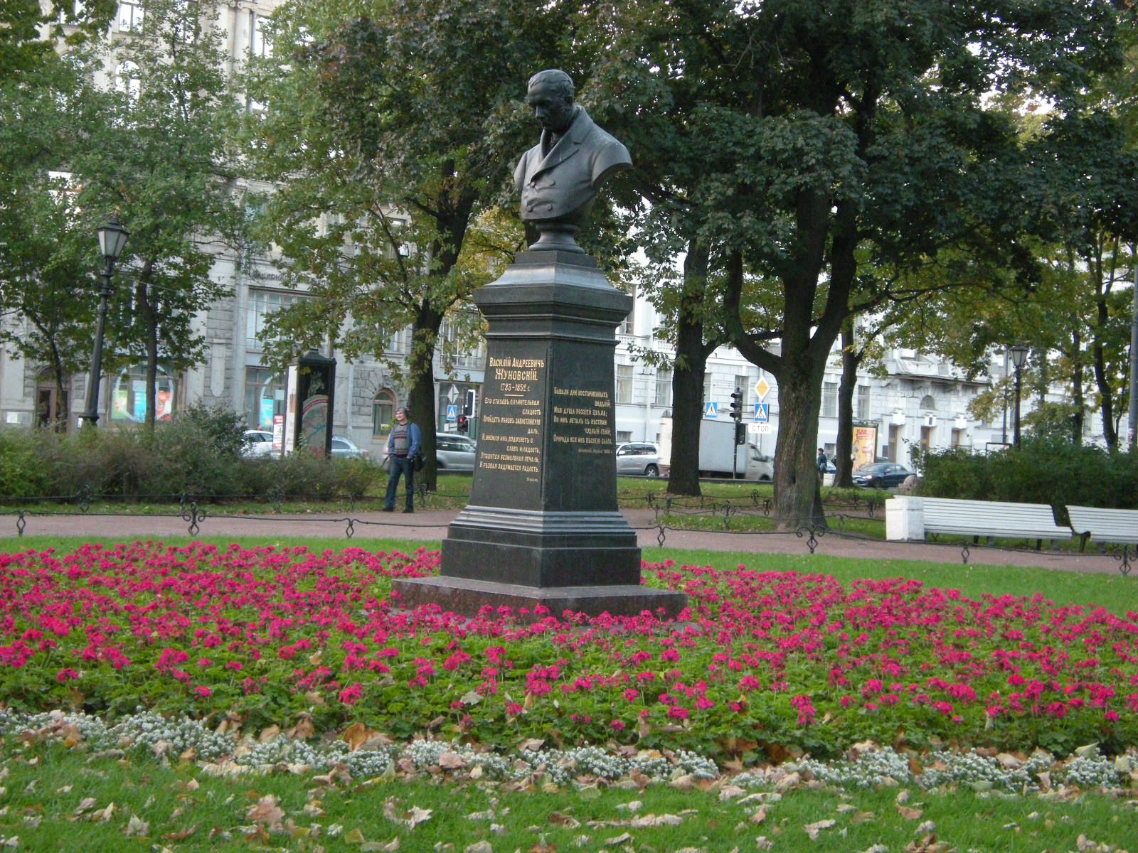 Александровский сад. Здесь в одном месте собрано великое множество памятников, достойных внимания посетителей. В любое время суток Адмиралтейская площадь, на которой разбит Александровский сад, наполняется народом. Просто невозможно найти свободную скамеечку. После открытия сада в 1874 году занялись его благоустройством. Государственная дума принимает решение украсить территорию парка памятниками, изображающими выдающихся деятелей в мире науки и русской словесности.