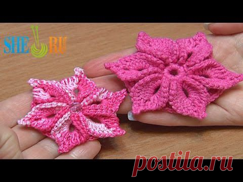 Вязаный цветок Урок 46 Цветок с лепестками украшенными пико