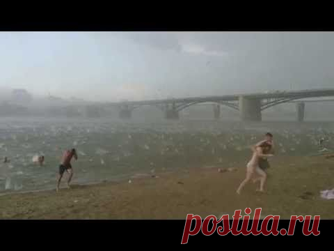 ▶ Внезапный ураган с градом посреди 35 градусной жары на пляже Новосибирска 12 07 2014 - YouTube