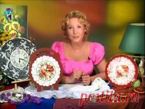 Обратный декупаж. В технике "имитация кружева" декорируем часы и тарелочку. Мастер класс