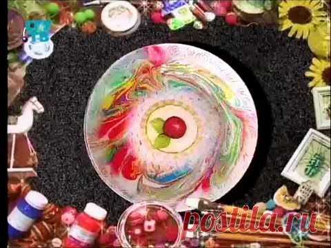 Декупаж. В технике "марморирование" декорируем тарелку и браслет. Мастер класс