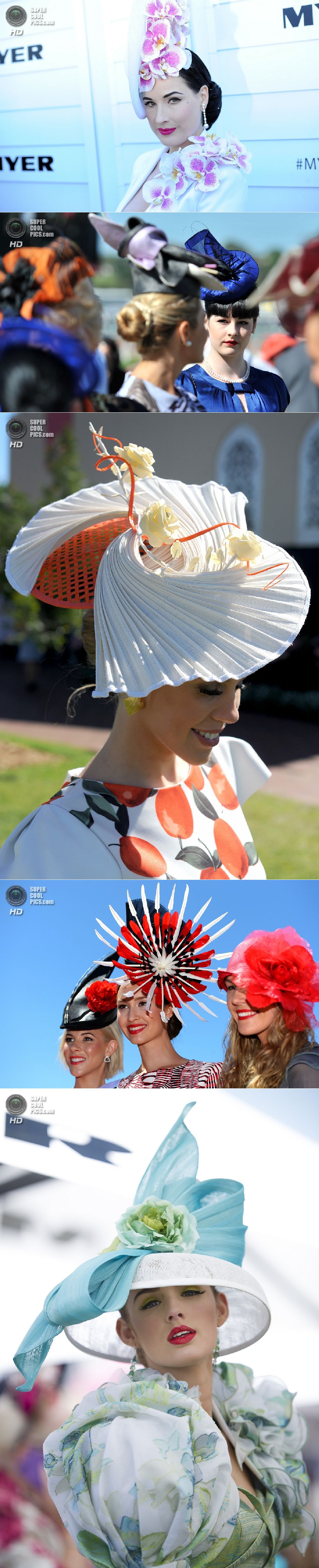 Стильные шляпки на скачках Кубка Мельбурна. Сегодня "Кубок Мельбурна" - это 2-х мильный гандикап с призовым фондом уже аж в 5 млн австралийских долларов. Стоит отметить, что когда лошади со своими наездниками наматывают круги, многие посетители скачек, а среди них часто можно увидеть немало знаменитостей, тоже соревнуются. Они демонстрируют лучшие головные уборы и подобранные к ним наряды. По установившейся традиции, в первый четверг -Oaks Day - проводят финал этого конкурса,