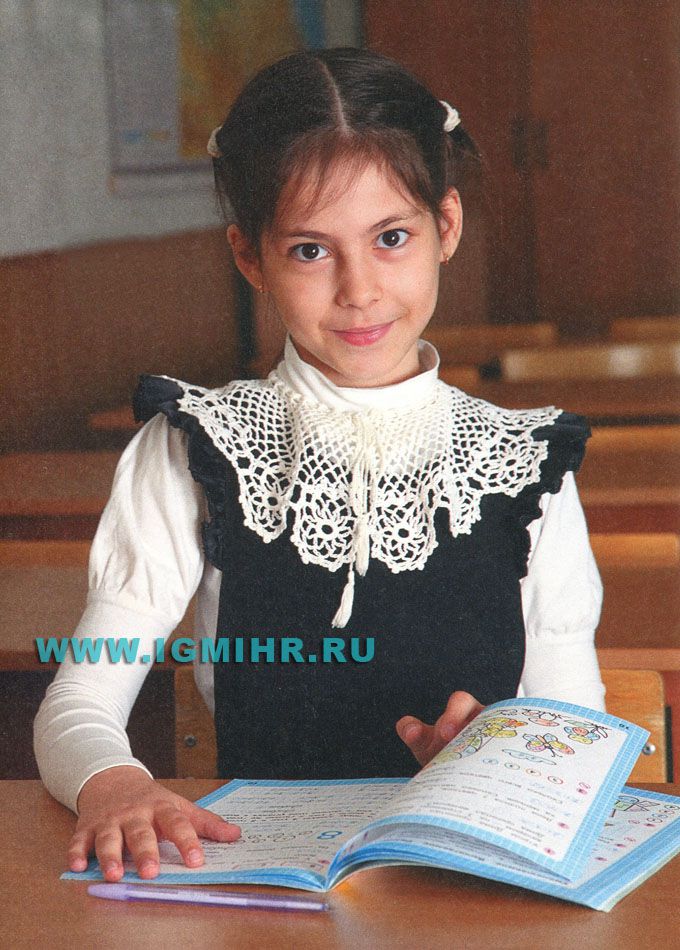 Для школьницы. Белый ажурный воротничок из мотивов. Крючок