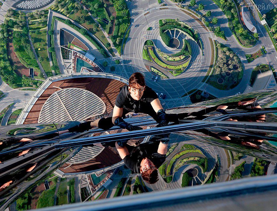 На съемках фильма «Миссия невыполнима-4». Надо бы посмотреть эту картину. Ради башни Бурдж Халифа.