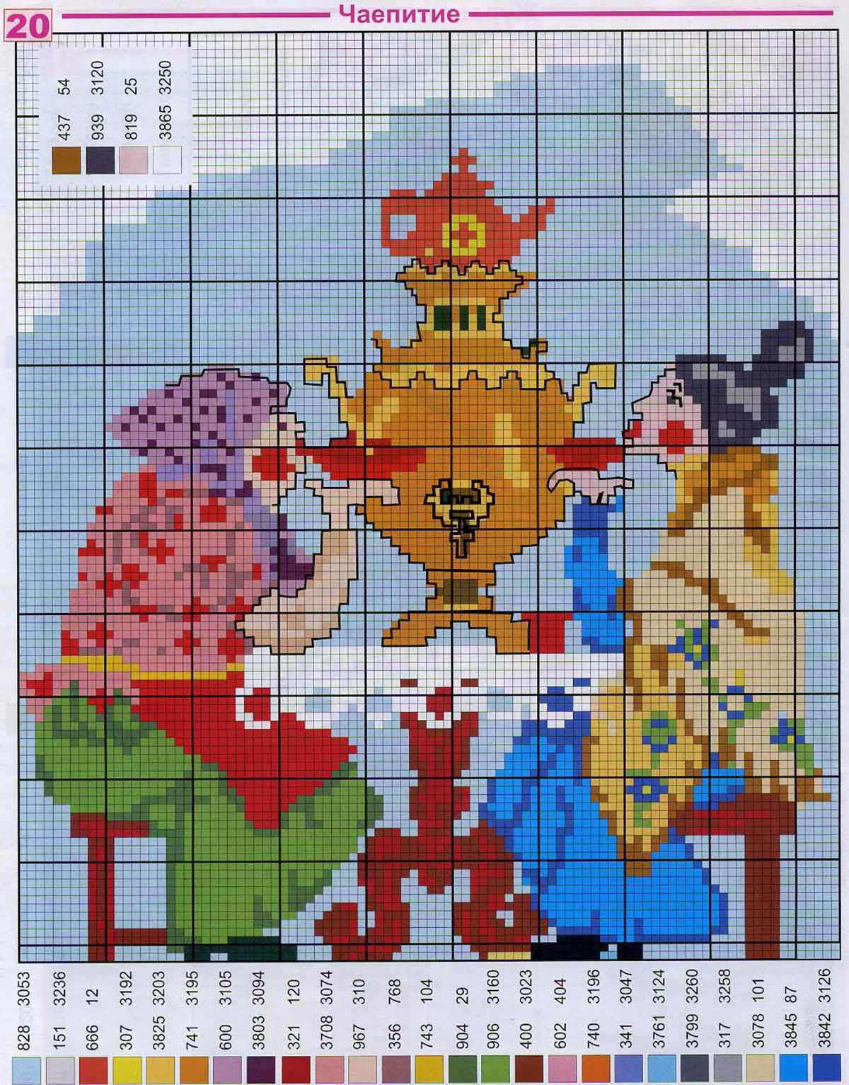 Кумушки на чаепитии - Схема для вышивания крестиком - Схемы вышивки Люди