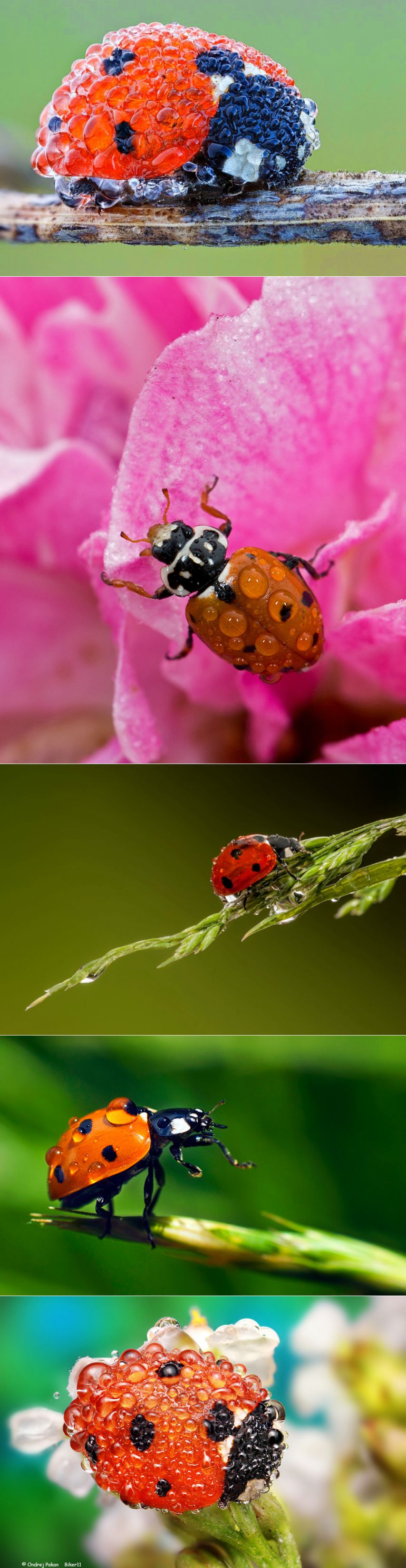 Божьи коровки в капельках росы!.