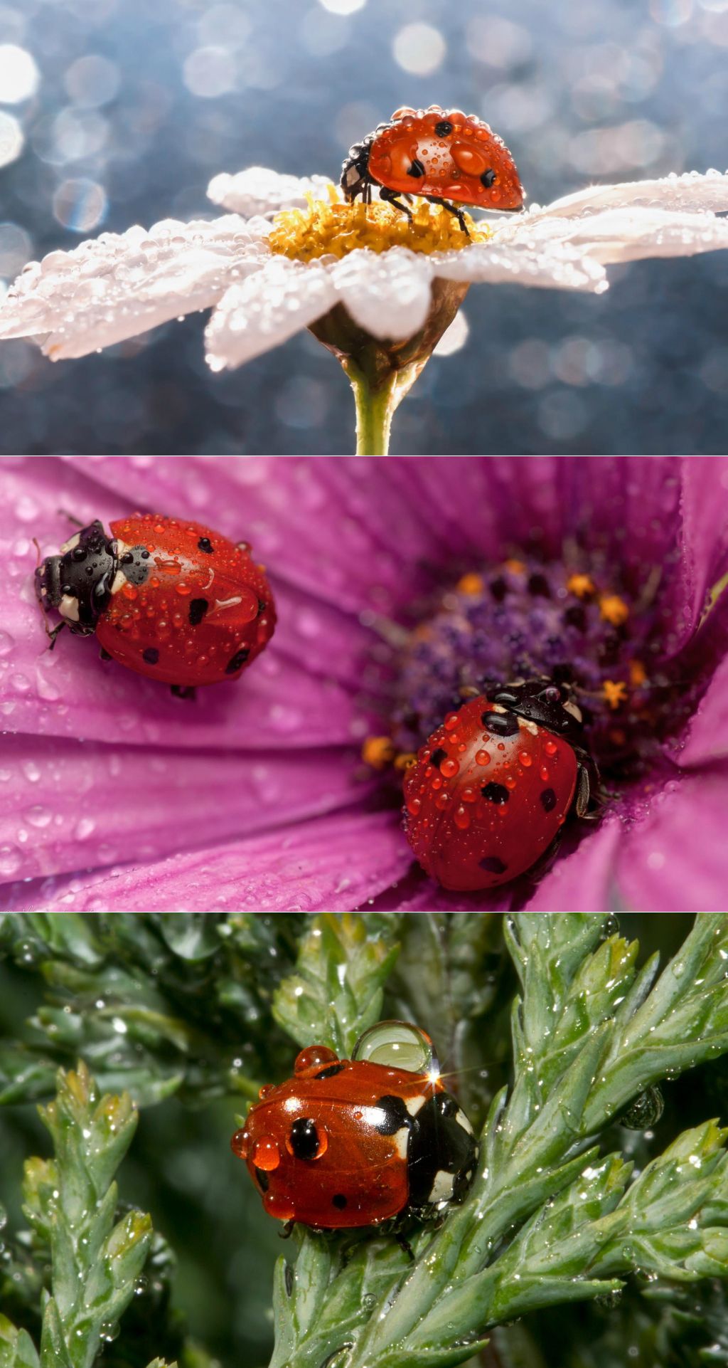 Божьи коровки в капельках росы!.