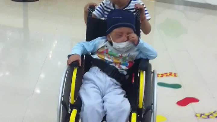 Это еще до пункции-Адилька катает Ахметика по коридору.22.07 2014.Сеул детская онкология