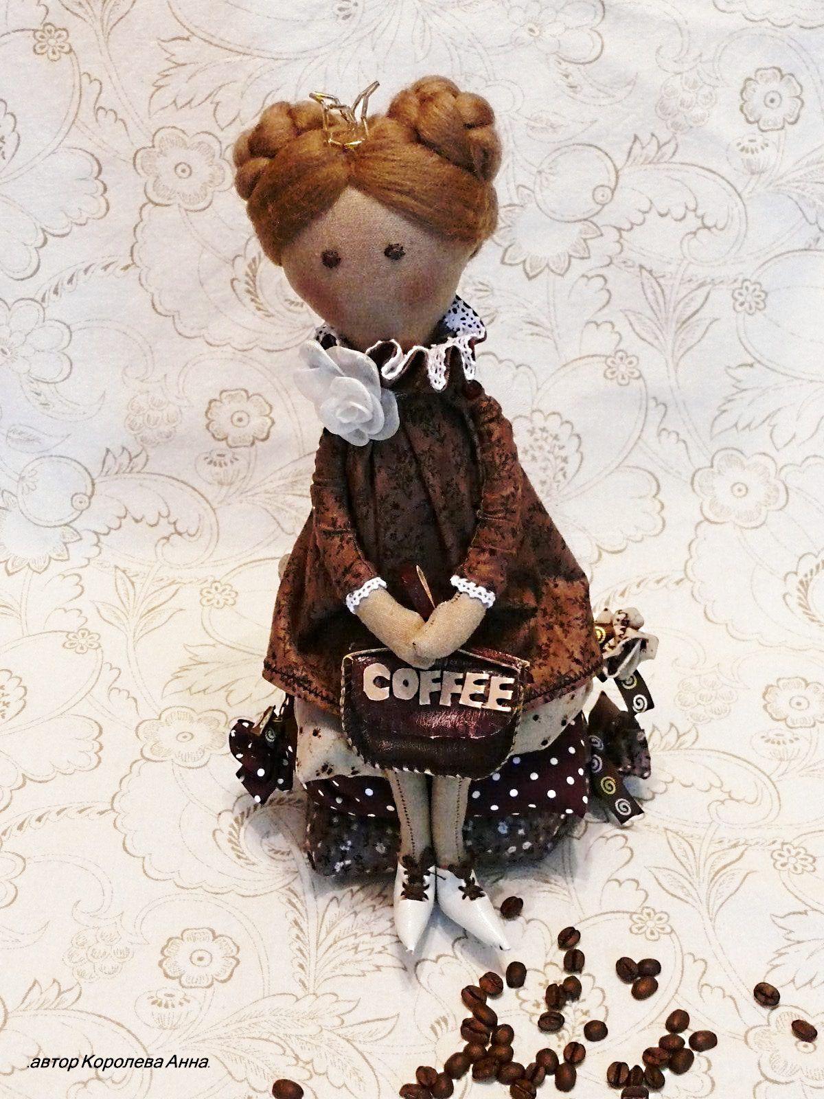 Для любителей кофе !!! А так же для кофеен и ресторанов, для домов и офисов! Красавица принцесса Мокко! Нежная ,добрая и очень тонкая натура. Вновь пополнила свои запасы , тремя мешками ароматного кофе ( в мешках хранятся настоящие кофейные зёрна ). Кофейная принцесса, отлично впишется в любой интерьер и наполнит атмосферу нежным и утончённым ароматом кофе. Лён-из которого сшита тело принцессы , пропитан на три раза вареным кофе, тем самым, придаёт коже Принцессе - цвет загара и истончает неповт