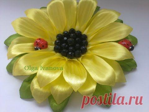 Цветок Канзаши Подсолнух flower Кanzashi Sunflower Мастер класс master class