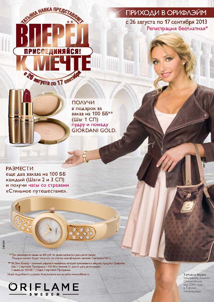 Предлагаем Вашему вниманию рекрутинговую акцию: «Вперёд к мечте!» Даты кампании: с 26 августа по 17 сентября 2013 Для нового Консультанта: При заказе 600 руб.* регистрация бесплатная! • Пройди ШАГ 1 (100 Бб) и более в течение 21 дня от даты регистрации и получи в подарок помаду и пудру GG • Пройди ШАГ 2 и 3 (заказы на 100 ББ) в последующих двух каталогах и получи в подарок часы со стразами <<Picture (Device Independent Bitmap)>> <<Picture (Device Independent B