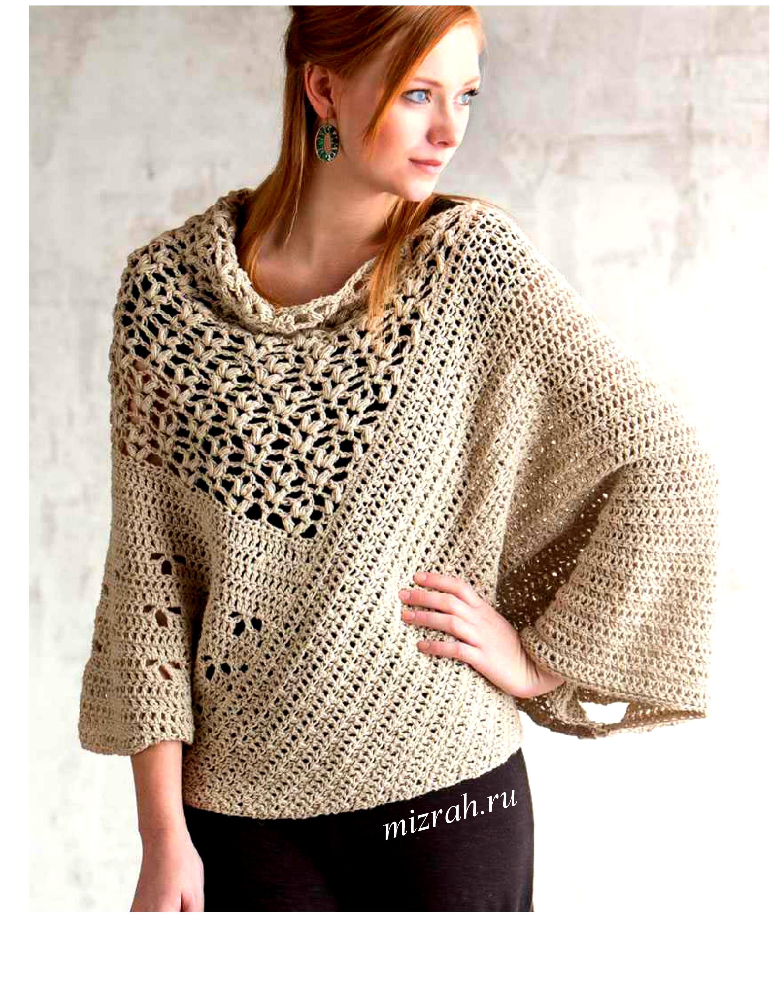 Пуловер-пончо крючком "Ракушки и песок". Перевод + разбор полетов
