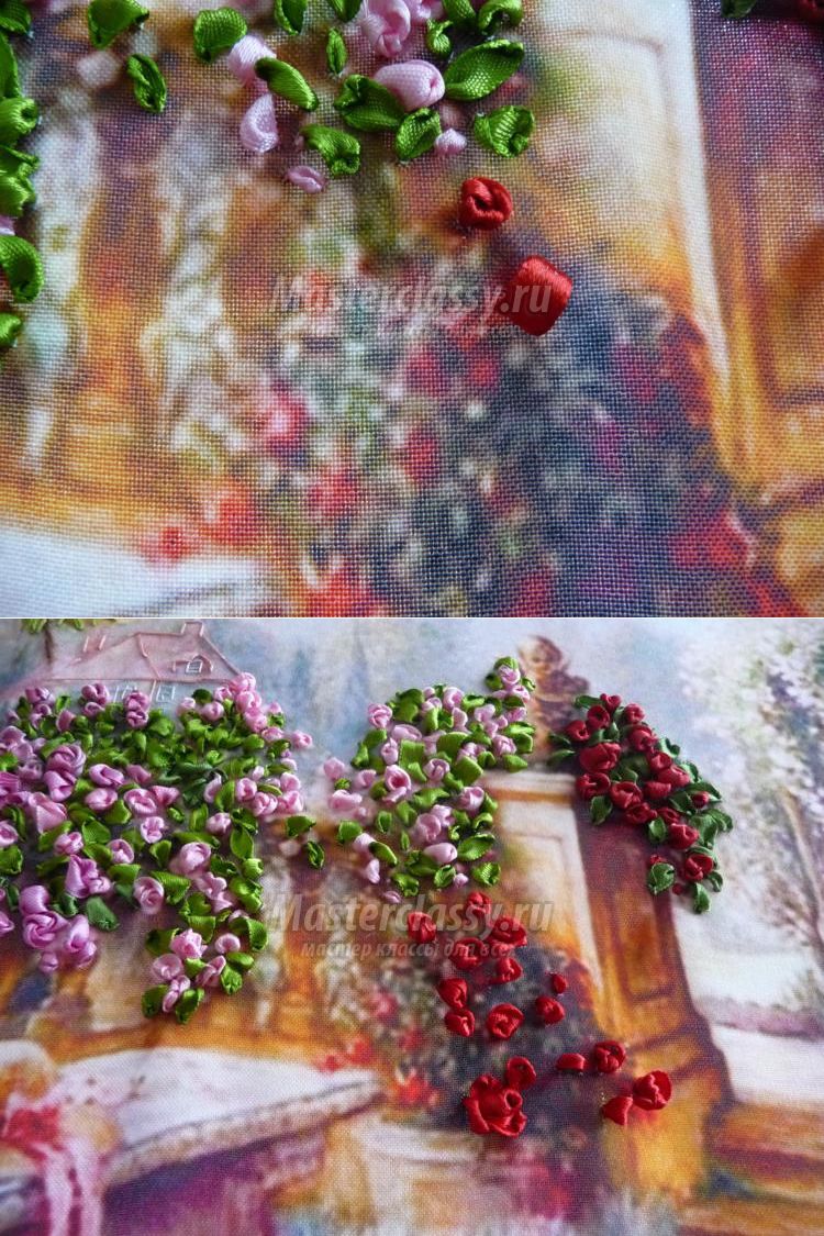 Вышивка лентами картины. Розовый рай. Часть 3. Мастер-класс с пошаговыми фото