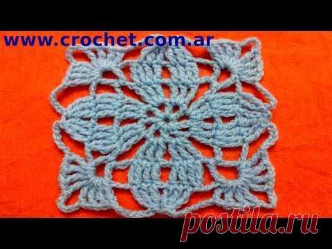 Motivo cuadrado granny square en tejido crochet tutorial paso a paso. Nº 3. - YouTube