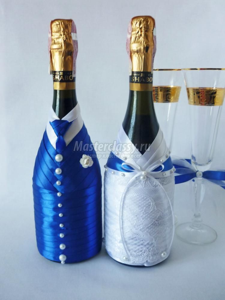 Свадебное украшение шампанского своими руками. Жених и невеста. Мастер-класс с пошаговыми фото
