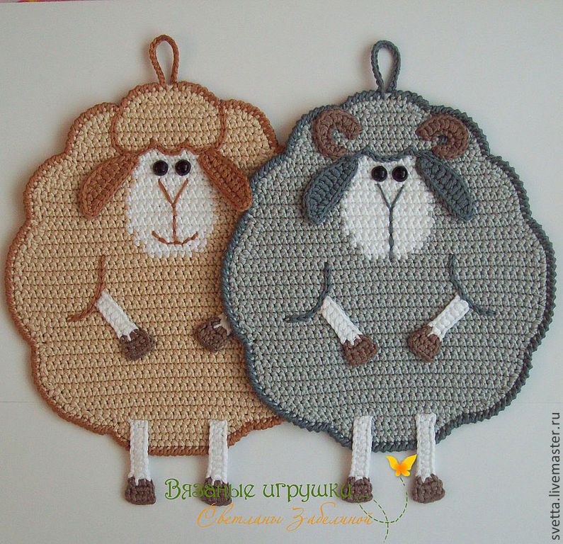 "Барашек и ярочка - забавная парочка" вязаные прихватки - прихватка,кухня