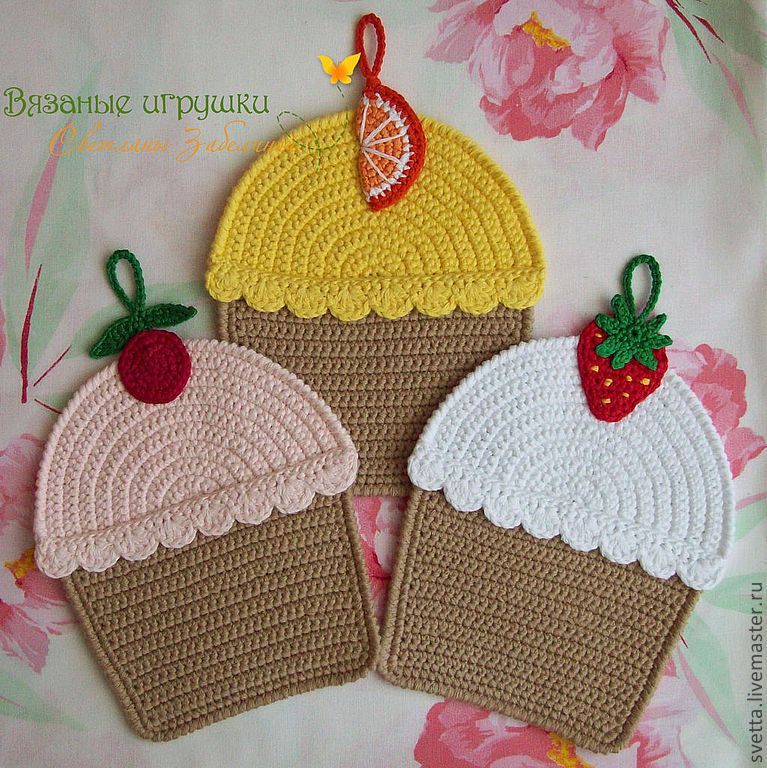 "Кексы" вязаные прихватки - прихватка,кухня,подарок,ручная работа,оригинальный подарок