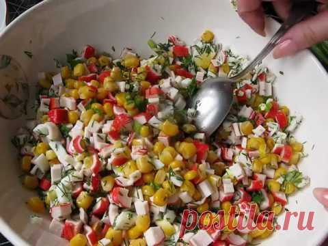 Салат с крабовыми палочками и свежим огурцом. - YouTube
