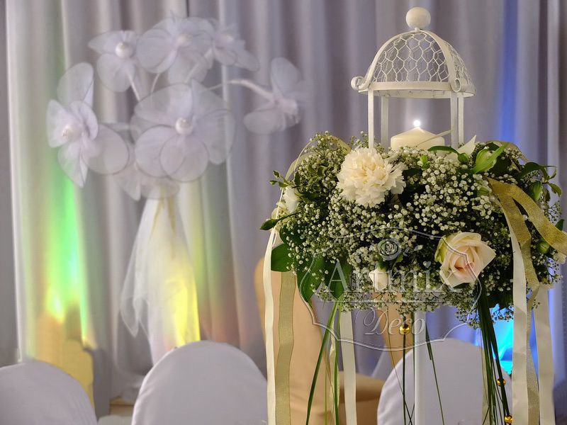 Свадебные украшения из живых цветов Цветы на свадьбу в фонариках, свадебная флористика, украшение столов гостей