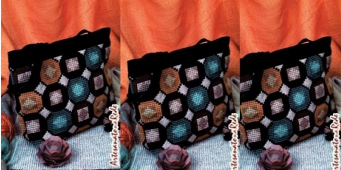 Сумка из мешковины с вышивкой геометрического рисунка