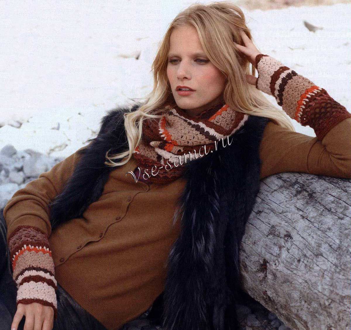Митенки и снуд крючком
