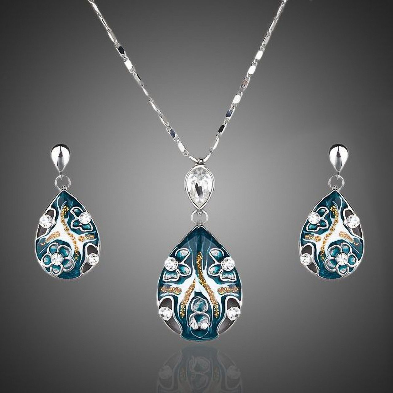 Это настоящий шедевр ювелирного искусства, который любую женщину сделает счастливой. Ведь представительницы слабого пола счастливы, когда чувствуют себя привлекательными, а значит уверенными в себе в самых разных обстоятельствах. Светло-голубой комплект украшений отлично будет гармонировать с однотонным или комбинированным цветом одежды, обуви и аксессуаров. Эти сережки и подвеска на светлой цепочке будут уместны и на работе, и на отдыхе.