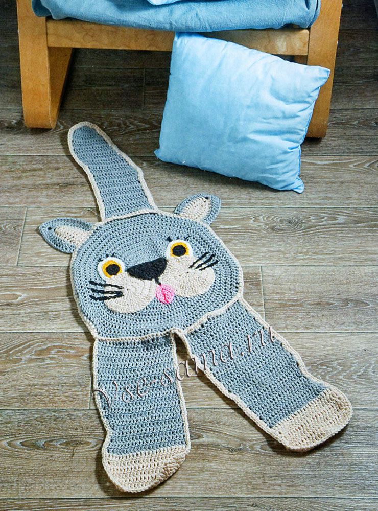 Коврик крючком «Серый кот» - Аксессуары, мелочи для дома крючком