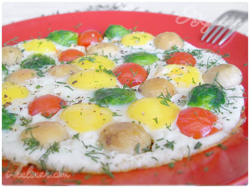 Разноцветная яичница глазунья с грибами и овощами | Я кулинар