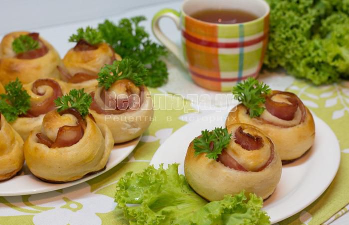Розочки с колбасой (беконом) из дрожжевого теста, рецепт с пошаговыми фото | Все Блюда