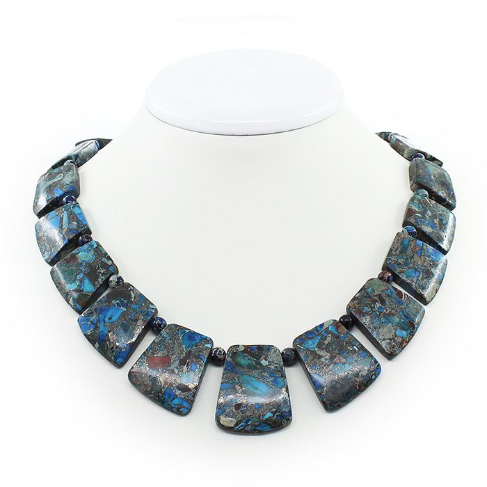 Колье варисцит синий "Лилиана", круглые 6мм, короткое 51см
