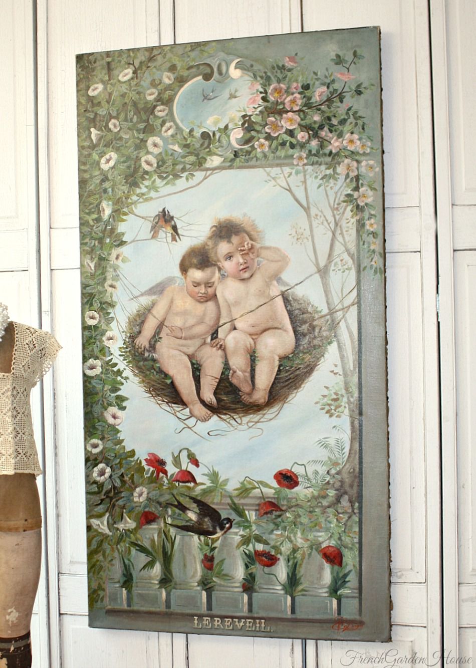 19 век французский Оригинальная картина маслом Амуры после Lobrichon Le Reveil