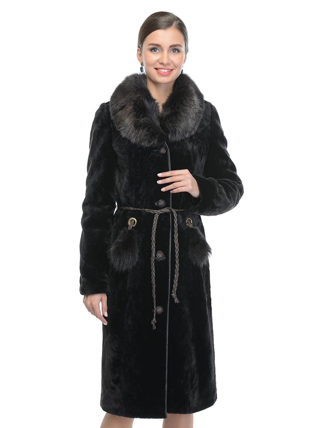 Модель ВП 36 из мутона с воротником и с отделкой песцом: цвет чёрный, артикул 0150566, цена 17000 рублей