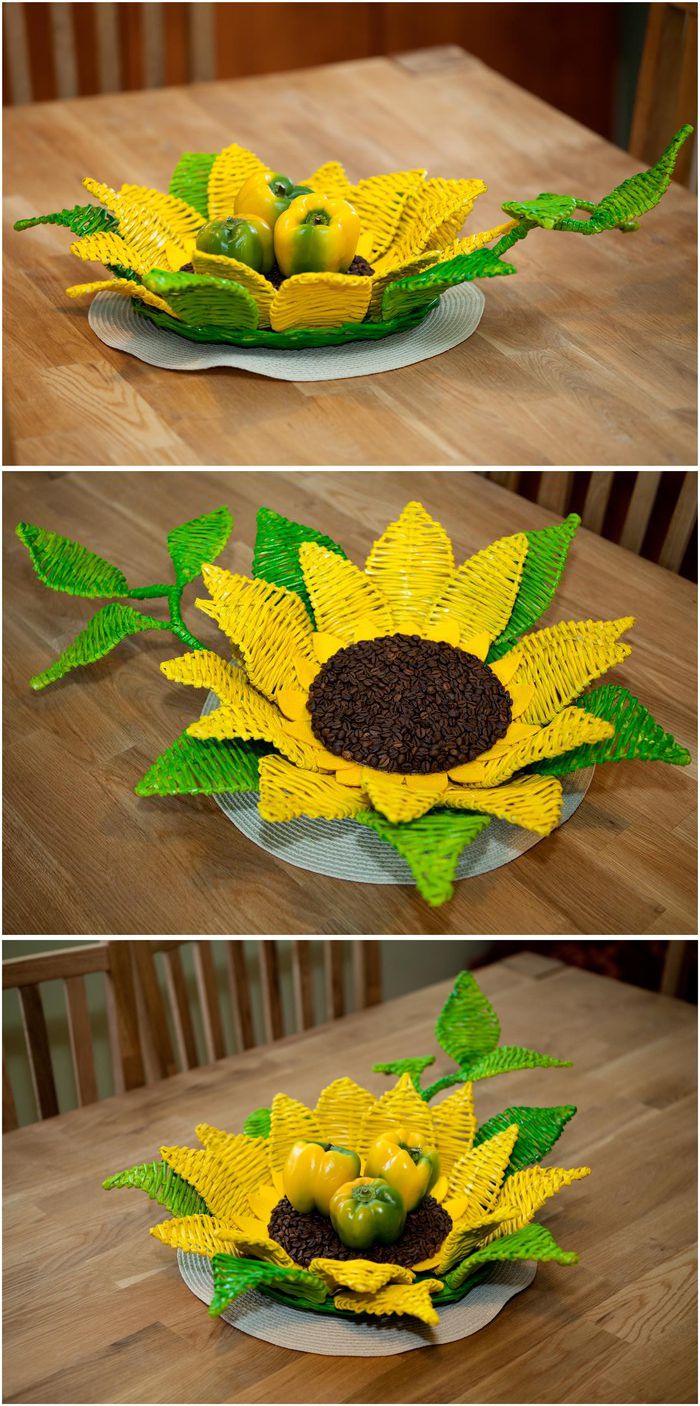 Подсолнух. Вазочка из газет и кофейных зерен