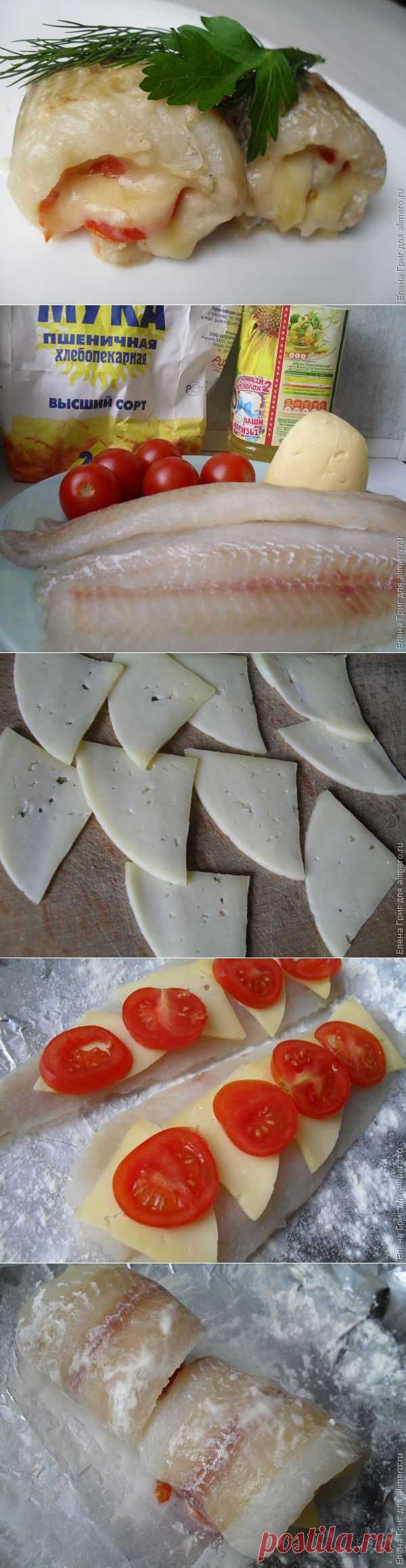Рулетики из рыбы | ДОМАШНИЙ ОЧАГ Степень сложности – просто. Время приготовления – 30 минут. Для приготовления рулетиков из рыбы нам понадобятся следующие ингредиенты: 1. Филе минтая – 700 г 2. Сыр твердого сорта – 100 г 3. Помидоры – 150-200 г 4. Растительное масло – 2-3 ст. ложки 5. Мука – 2 ст. ложки 6. Соль и перец — по вкусу