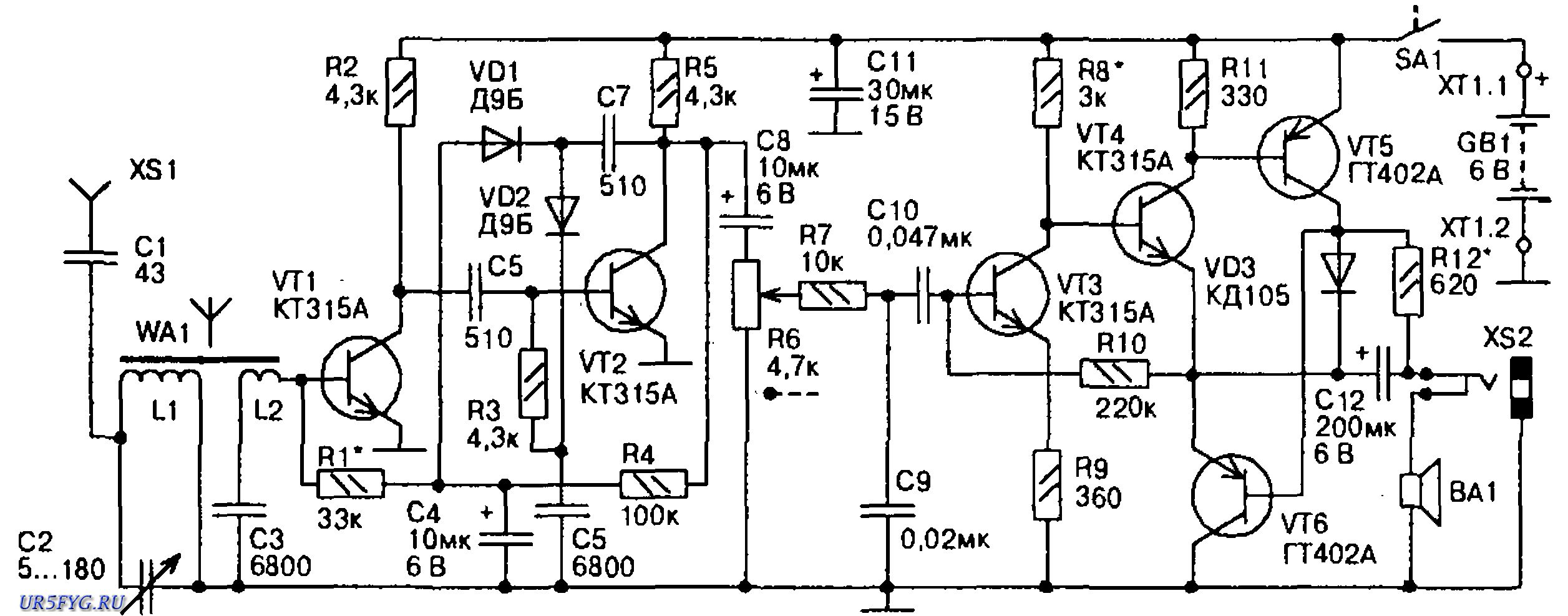 Шеститранзисторный приемник прямого усиления диапазона СВ » Радиолюбительский портал - DxPortal (ДХ Портал)