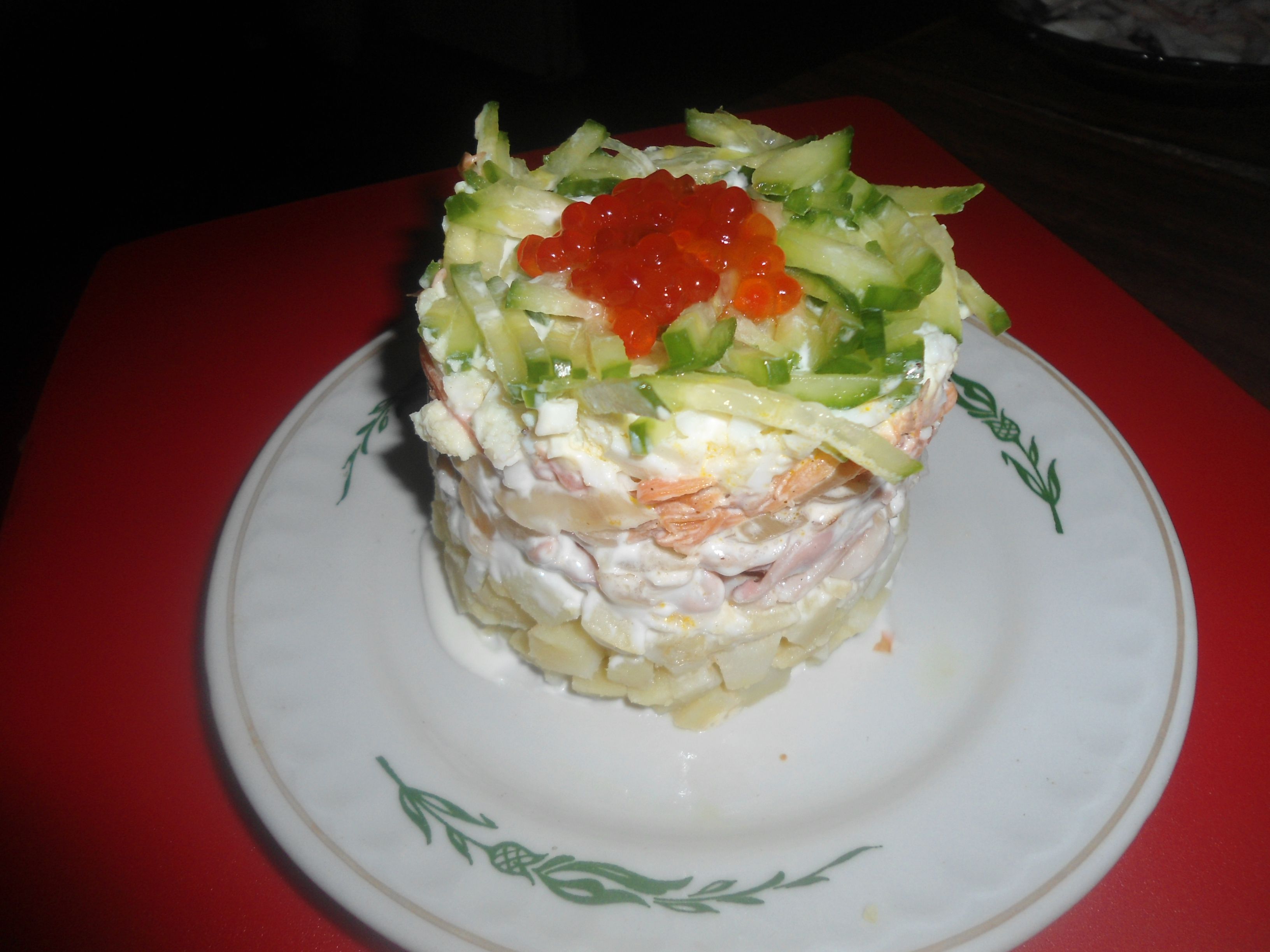 Салат 'Романтика" с кальмарами пошаговый рецепт http://ligakulinarov.ru/r/salat_romantika_s_kalmarami_1430