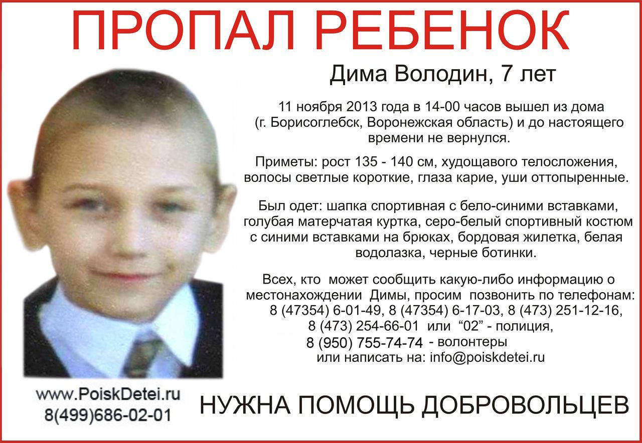 ПРОПАЛ РЕБЕНОК! Дима Володин, 7 лет, г. Борисоглебск Воронежской области. Просим распространить информацию!.