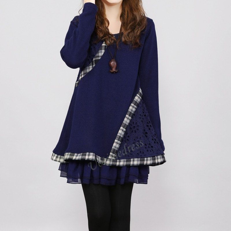Темно-синий свитер хлопка Женская платье Хлопок капюшоном на Uotimedress