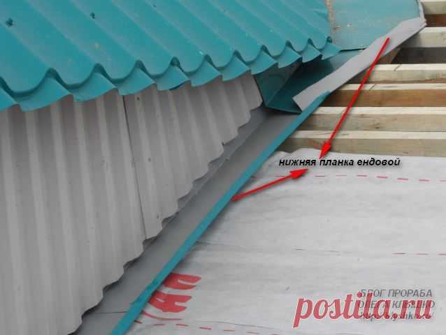 Ендовая крыша Монтаж ендовых планок начинается снизу, с нахлестом 15-20 сантиметров, для того чтобы стыки были по течению воды, а не против. Некоторые специалисты советует загерметизировать стыки планок для лучшей надежности, мы этого не делали.