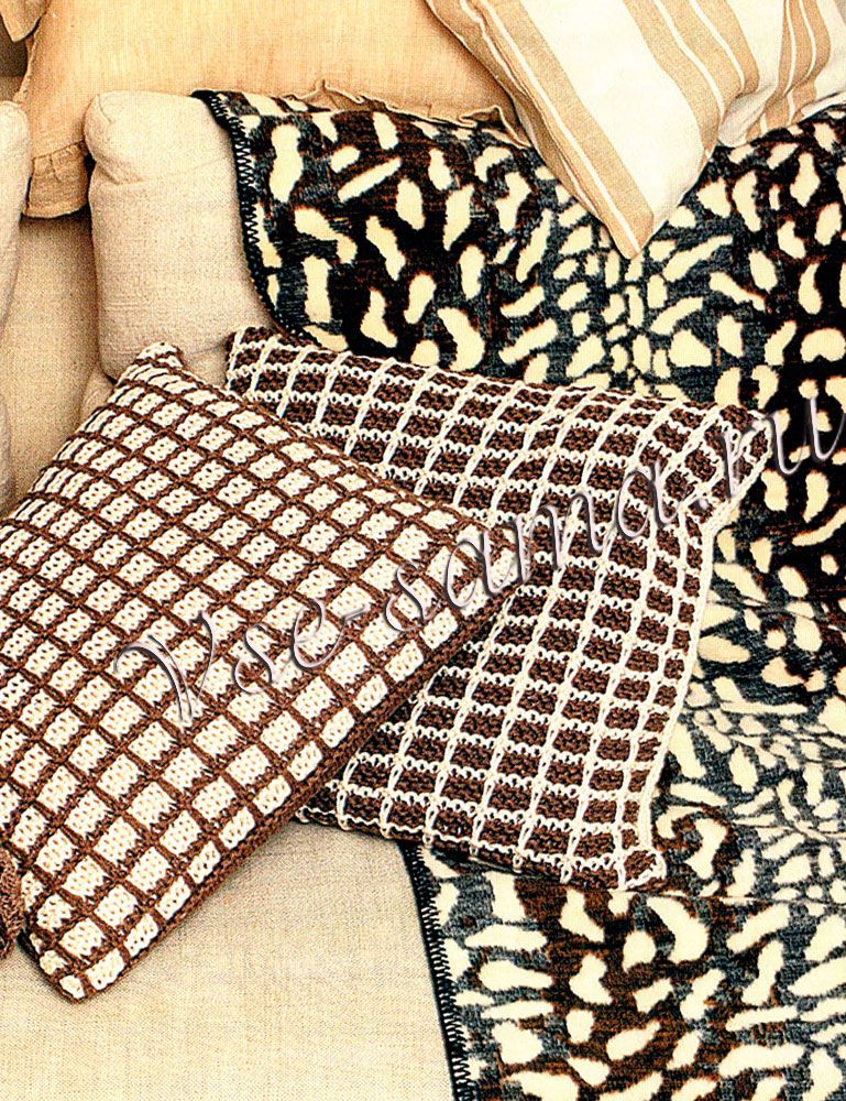 Клетчатые чехлы на подушки спицами / vse-sama.ru
