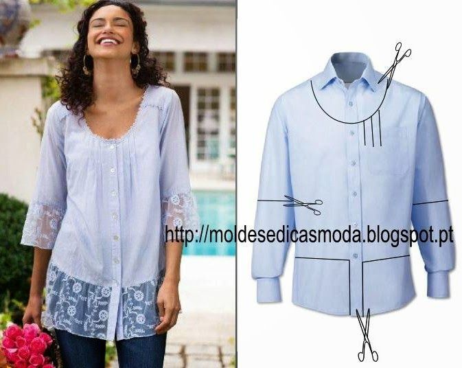 Две идеи как переделать мужскую сорочку в романтическую блузку