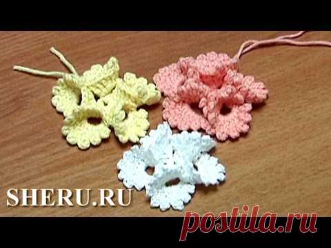 Вязание Цветов Урок 13 Как связать Цветочек лепестки которого выполнены из столбиков с пико - YouTube