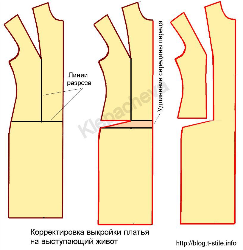 корректировка выкройки на выступающий живот