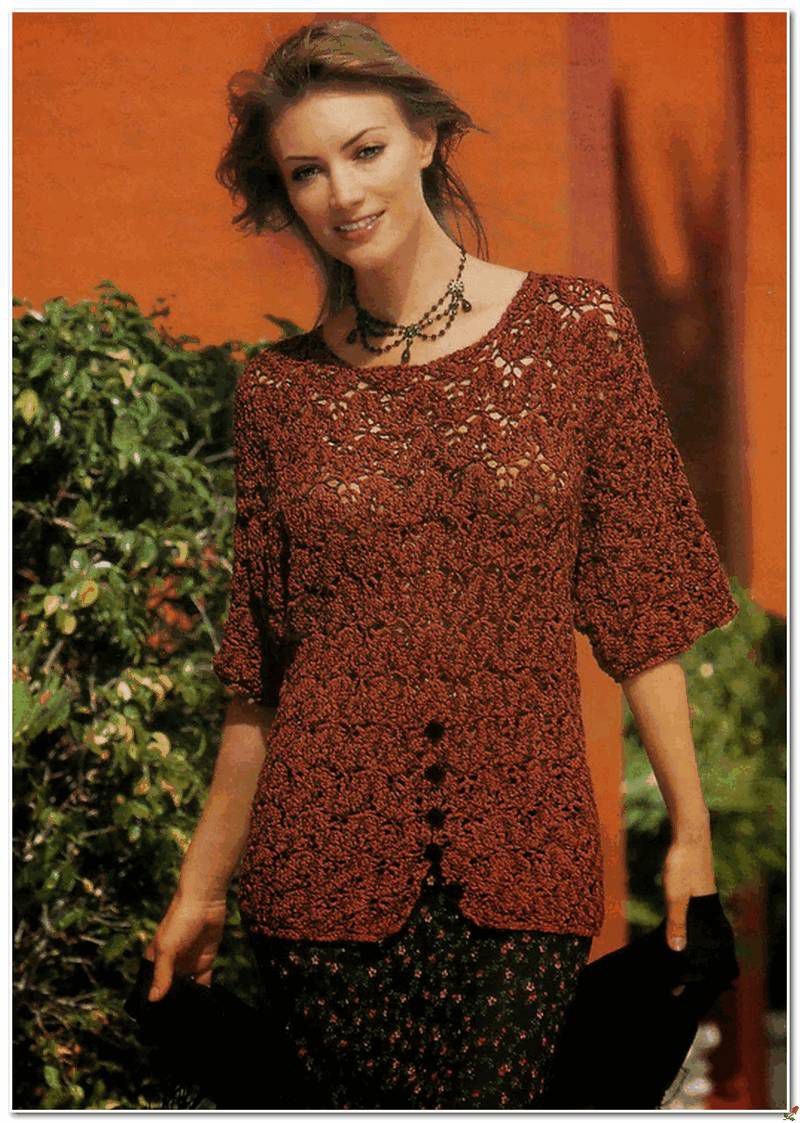 Ажурный пуловер крючком из меланжевой пряжи. Интересное выполнение низа изделия. Схема. / Обсуждение на LiveInternet - Российский Сервис Онлайн-Дневников