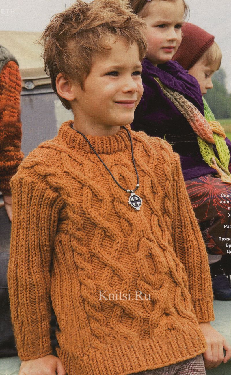 Детский свитер с косами.