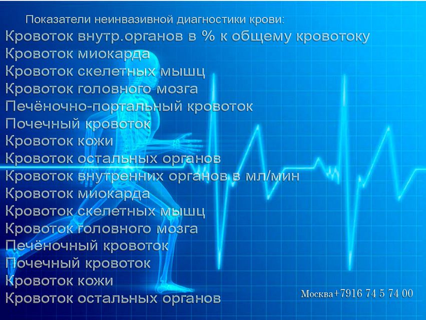 Неинвазивный анализ крови (без укола и забора крови – в течение 10 мин. 136 параметров крови ). Данная диагностика позволяет оценить состояние как отдельных органов и систем так и всего организма в целом за минимальное время. Москва. 5 мин.пешком от м.Каховская или м.Нахимовский проспект. +7 9167457400